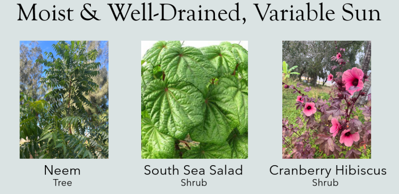 High & Dry, Full Sun: Tree Layers (tall & low trees - some are pruned to be low)